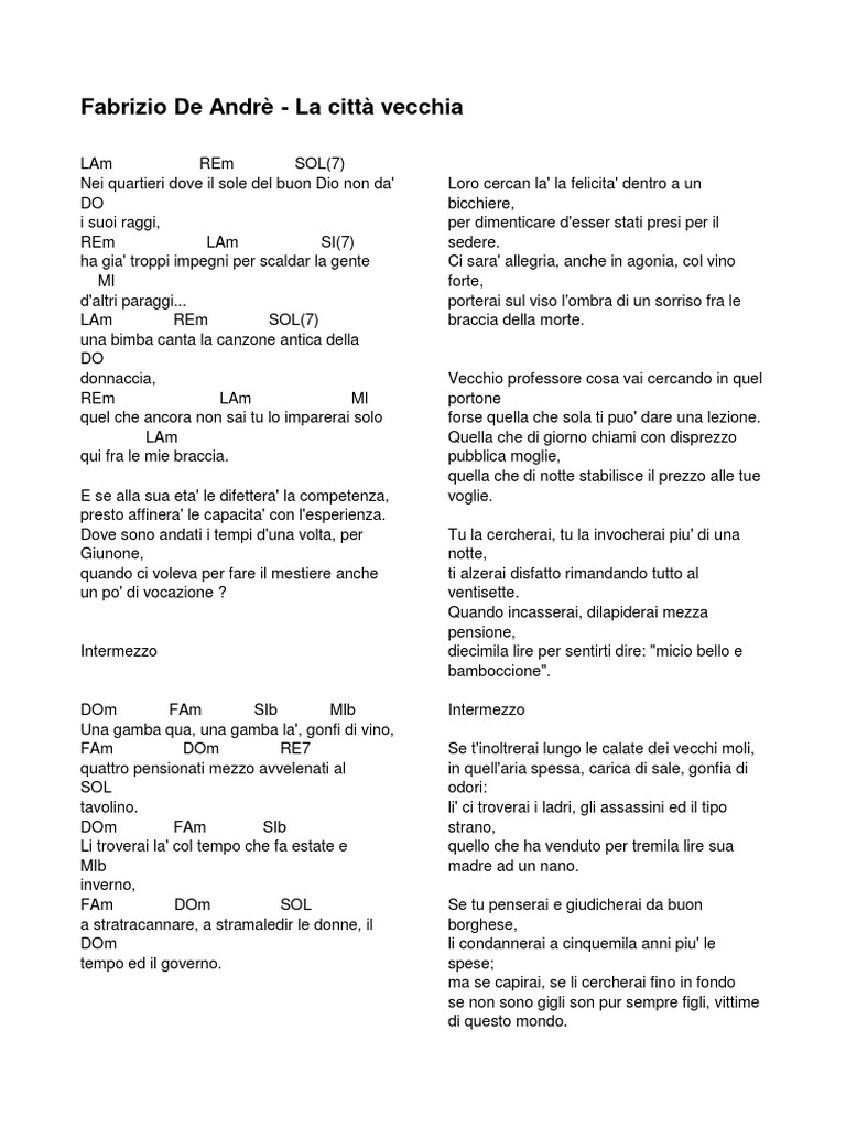 LA CITTA' VECCHIA (DE ANDRE') su PENSIERI E PAROLE