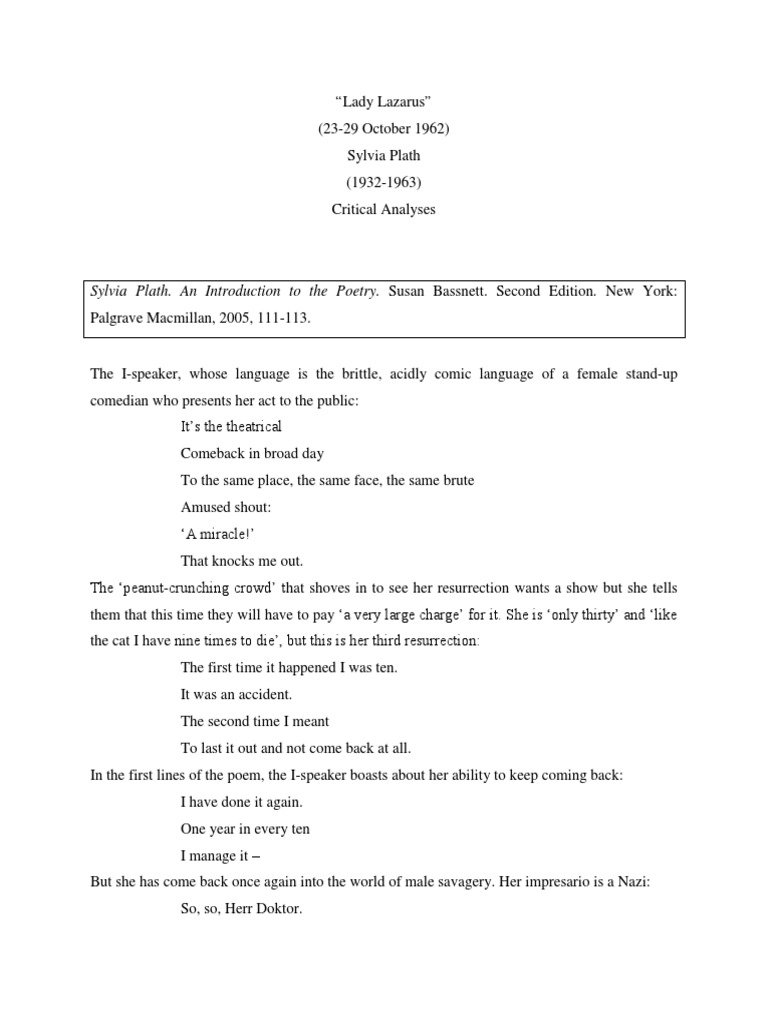 Essay Sylvia Plath's Lady Lazarus - 1350 Words | Bartleby