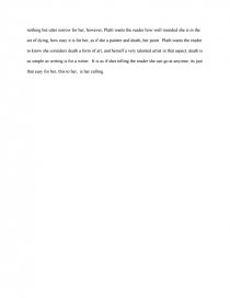In " Lady Lazarus " by Sylvia Plath, there are many different poetic devices that are chose to portray the speakers tone . Throughout the poem, the speaker seems to be talking about death at a glance it seems like she is happy with the though of death . But if we dissect the literary elements that Plath uses we can see that death is far from a . . .
