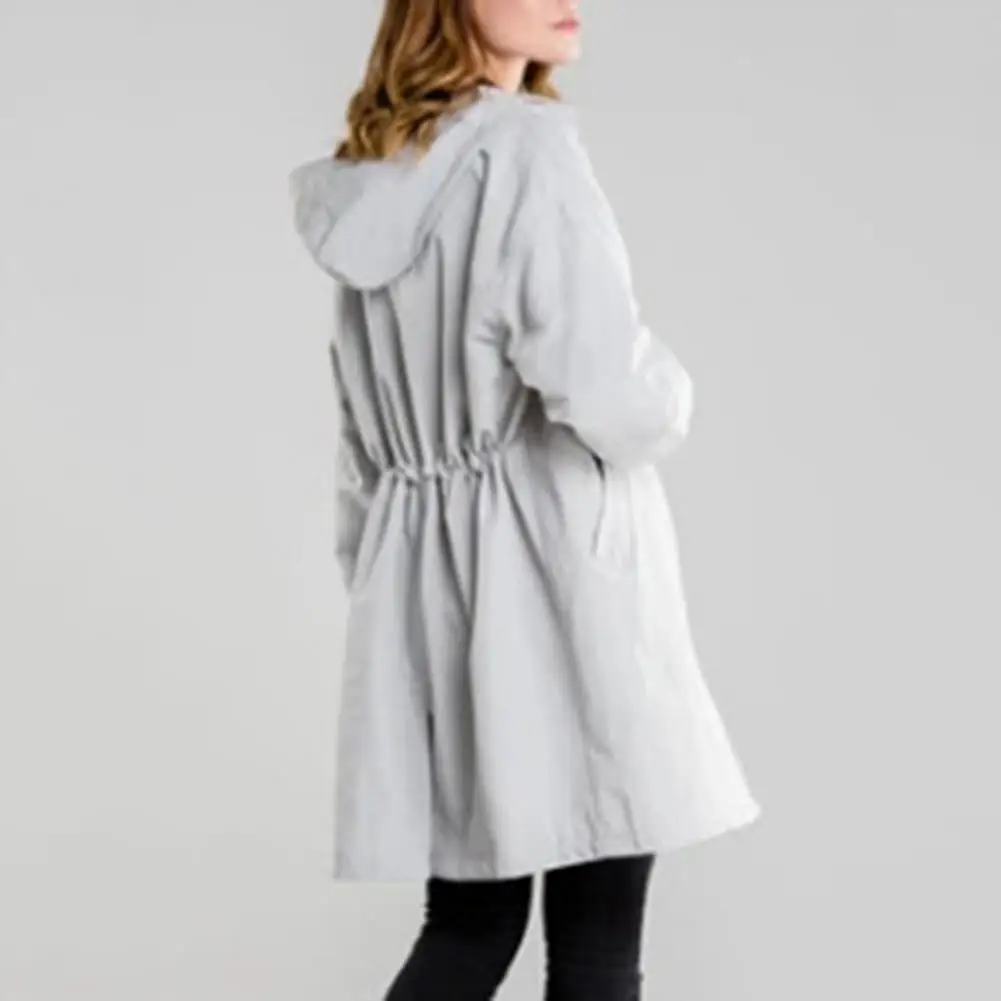 "Lady Windproof Coat Stylish Women's Mid-length Windbreaker Hooded Windproof Soft with Drawstring Pockets for Fall Spring Solid" * Buy Now With Free Shipping Just For $8