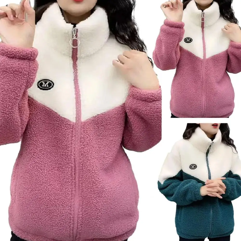 Lady Winter Jacket Thickened Plush Women's Winter Coat Color Matching Zipper Closure Warm Cardigan With Pockets Plus Size Jacket - Купить с бесплатной доставкой