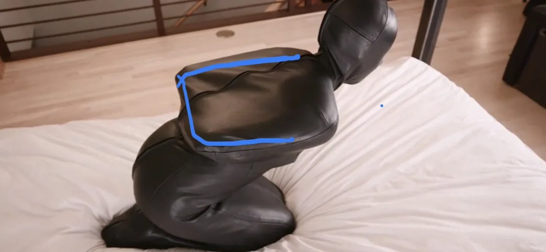 After Lady Emjay prepared her slave to be her seat pillow, she now puts him into a shiny nylon down sleepingbag . Once inside, he`s been secured with tension belts . Being unable to free himself from the warm down prison, she even pulls the hood over his face before she cuts his air by sitting down on this .