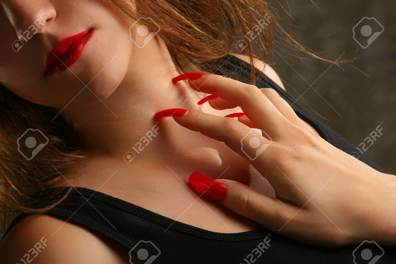 Lady with long nails tapping fan image