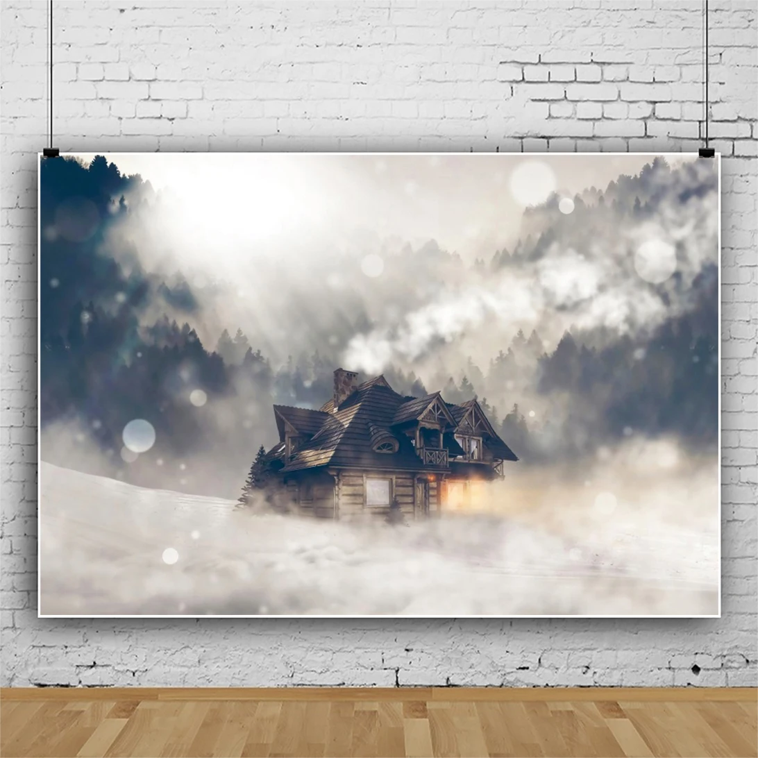 "Laeacco Christmas Winter Forest Wooden House Light Bokeh Landscape Photo Background Photographic Backdrop For Photo Studio" * Buy Now Just For 11$