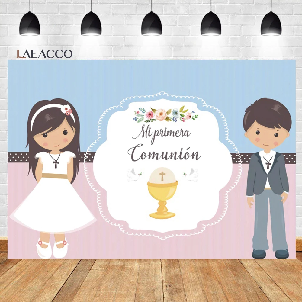 "Laeacco First Holy Communion Pink Gradient Photocall Backgrounds Grail Dove Cross Baby Portrait Customized Photography Backdrops" * Buy Now Just For 6$