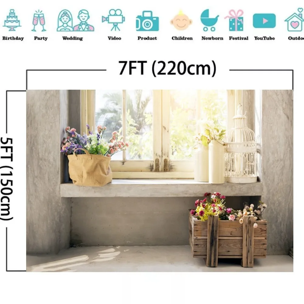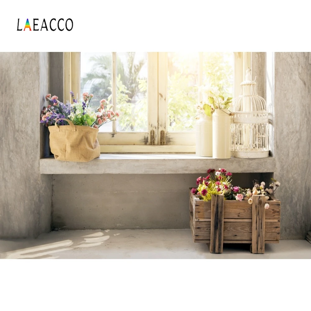 "Laeacco Old House Balcony Window Potted Plants Sunflower Photography Backdrops Photo Backgrounds Spring Portrait Photocall Props" * Buy Now Just For 14$