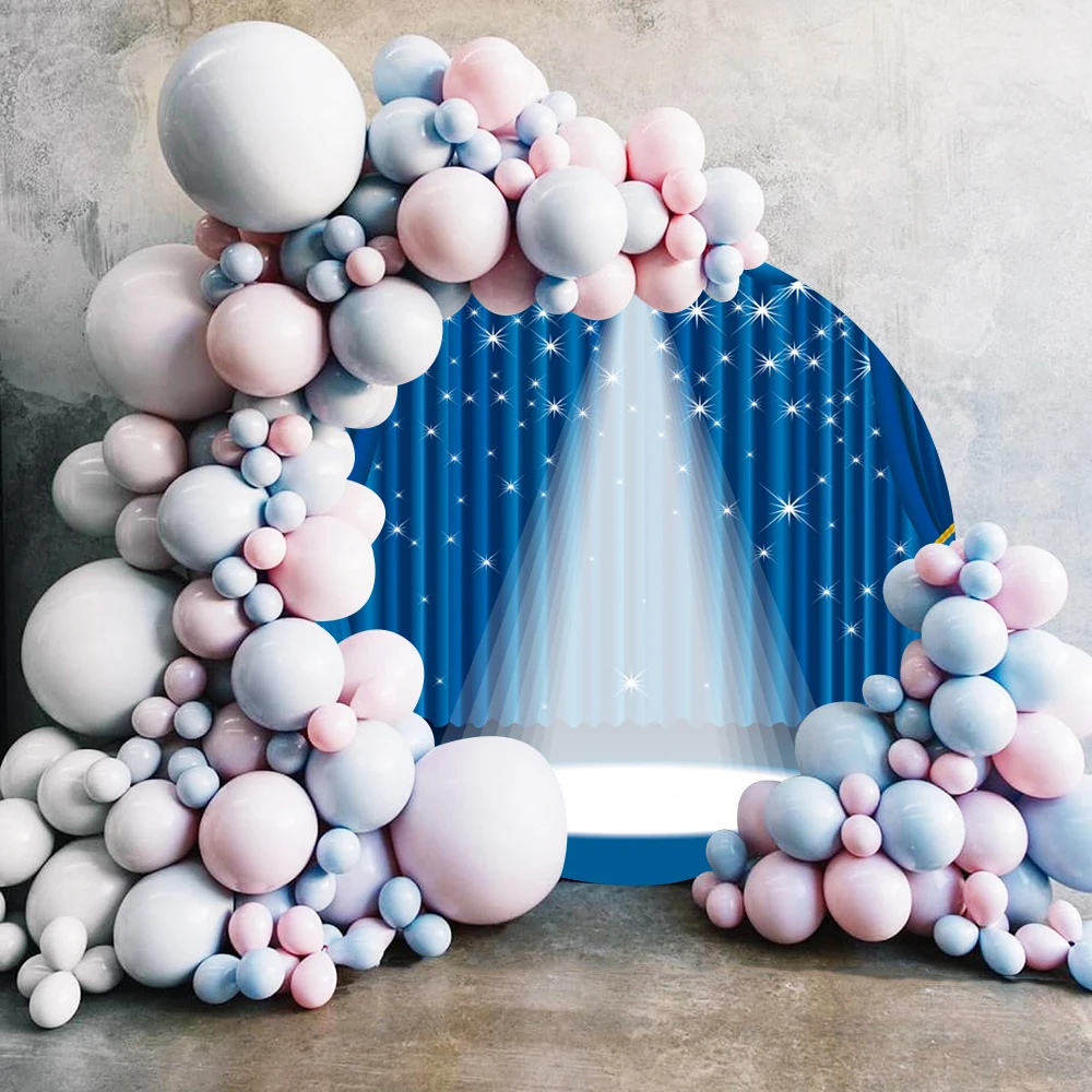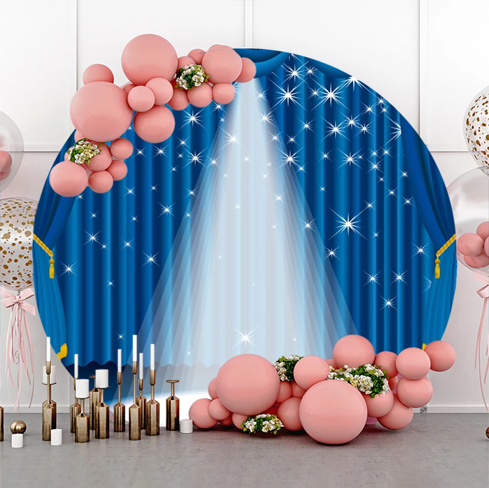 "Laeacco Stage Circle Backdrop Blue Drapes Curtain Panels Sway Window Music Theater Party Event Portrait Photography Background" * Buy Now Just For 23$