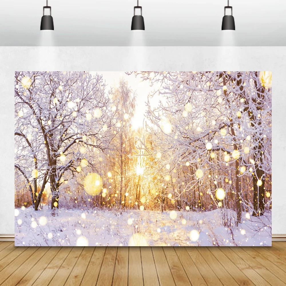"Laeacco Winter Photo Backgrounds Forest Snow Trees Light Bokeh Baby Family Portrait Photography Backdrops For Photo Studio Props" * Buy Now Just For 13$