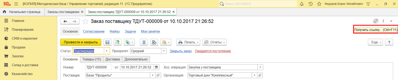 Коллега также быстро откроет документ в базе по ссылке: