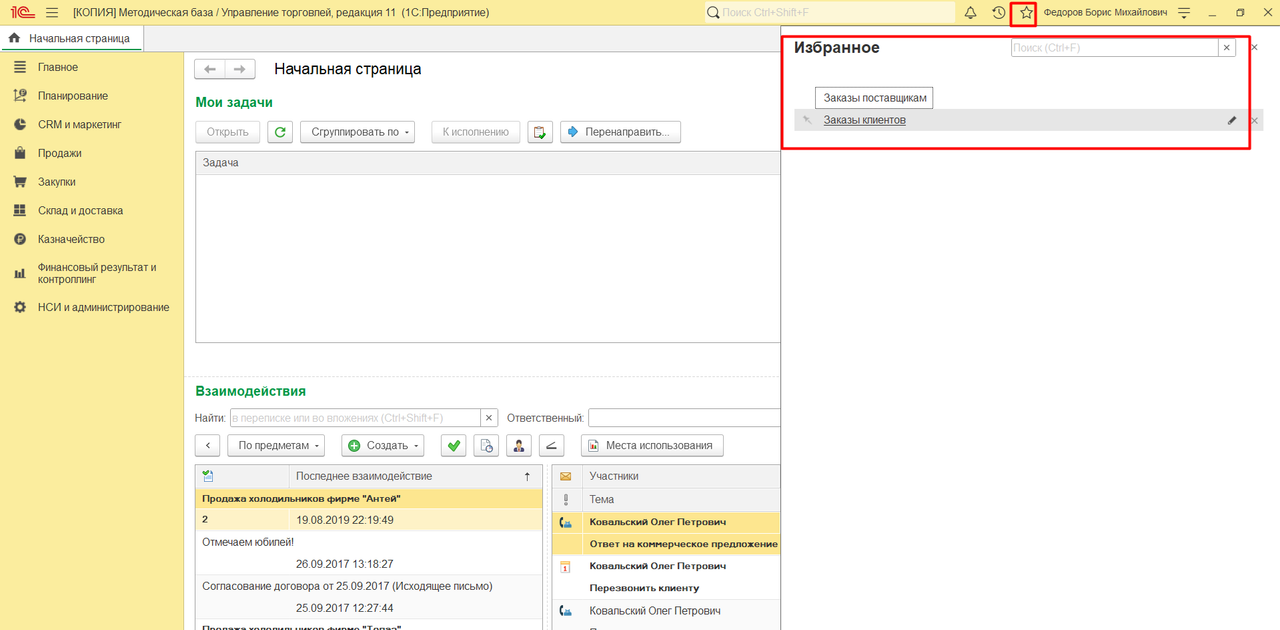 5. Вы можете собрать самые часто используемые объекты, находящиеся в разных подсистемах программы в Избранное, и таким образом, настроить свое рабочее место: