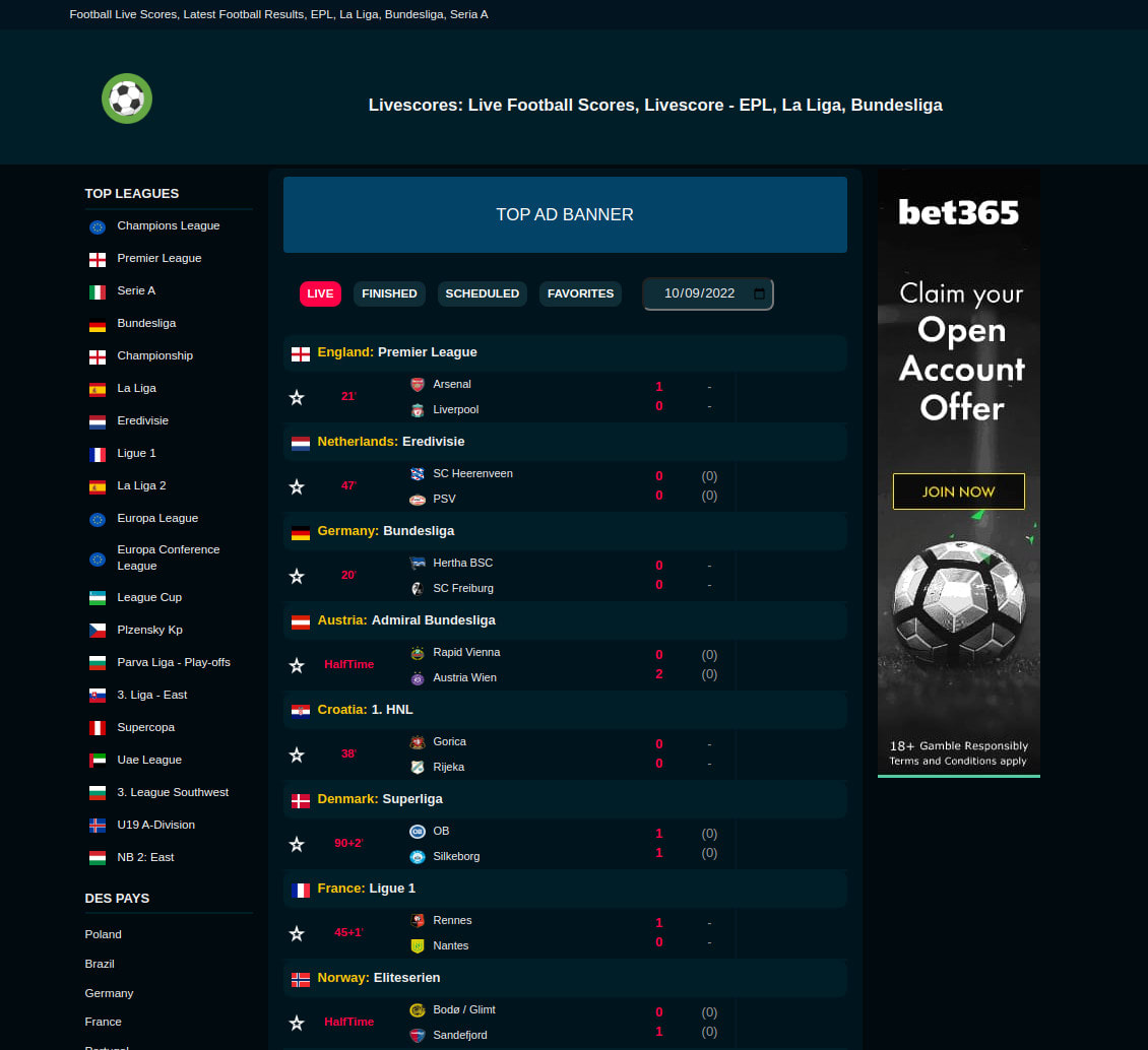 Лайвскор футбол