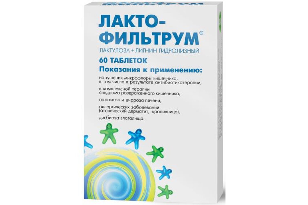 Лакто-Фильтрум 60 таблеток в них содержится лактулоза и лигнин гидролизный . Таблетки хорошо помогаю при нарушение микрофлоры, гепатит, и разных аллергических забалеваний . Данные таблетки отпускаются без рецепта Таблетки мне очень помогли когда надо было почистить организм, была нарушена флора .