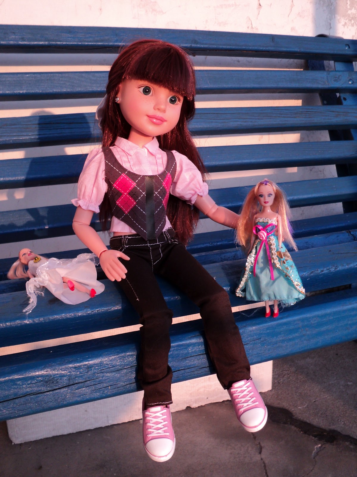 W związku z tym do szkoły przybyłam w dość kusej sukience wysadzanej kryształami, którą zaprojektował sam Karl, ale zanim wyszłam z domu pozwoliłam sobie na mini sesję, której efekty poniżej . W pokoju nauczycielskim powitały mnie zazdrosne spojrzenia lalek, które nigdy w salonie firmowym Karla nawet czubka stopy nie postawiły .