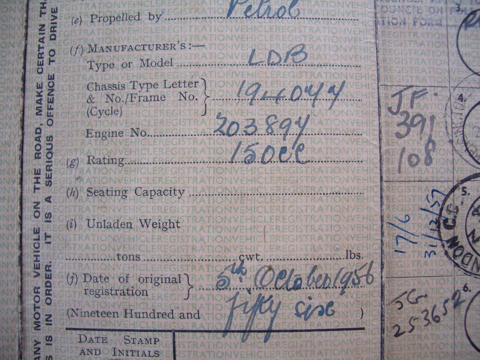 When sending your dating letter, it is important that your Lambretta frame matches the dating letter and the V55/5 application information . Any discrepancies in this area will result in your application being rejected . An example of a rejection may include: A Lambretta LD frame number is LD125 123456 . The club letter states 123456