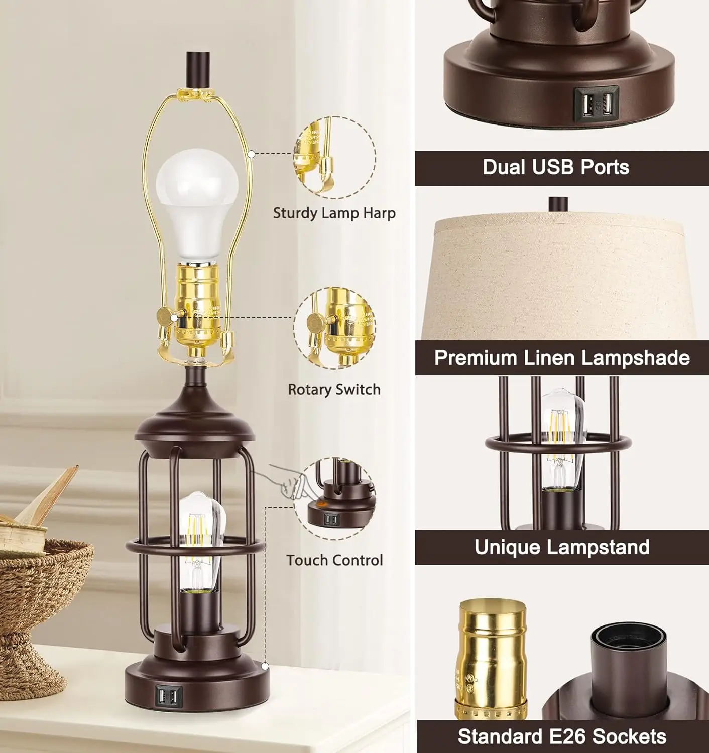 moZnkSwQRvЗдесь вы сможете купить Lamp for Living Room with USB Ports, Touch Control 3-Way Dimmable Bedside Lamp with LED Night Light, Farmhouse Rustic Nightstand с бесплатной доставкой до вашего почтового отделения.