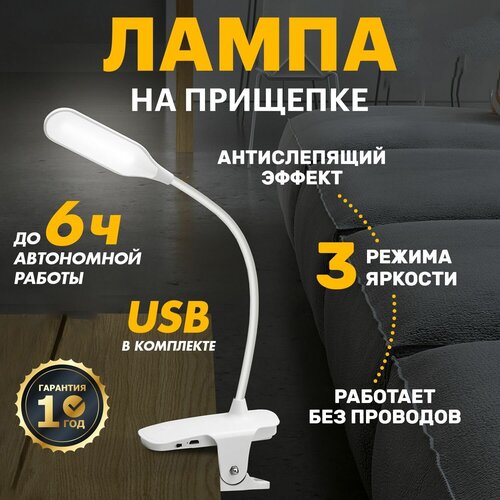 La lampe de table est utilisée pour éclairer le lieu de travail et la zone de chevet. La source de lumière LED de haute qualité sans pulsation permet à la lampe d'être utilisée aussi bien au bureau qu'à la maison. Le diffuseur mat a un effet anti-éblouissement, réduit la luminosité globale, créant une lumière uniforme et douce. Une attache pince à linge est fournie : fixation au bout d'une table, d'un lit ou d'un meuble. La lampe se recharge à partir d'une alimentation 5 V CC (non incluse) ou via un port micro USB universel. La lampe est équipée d'une batterie, grâce à laquelle elle peut fonctionner jusqu'à 3 heures en l'absence de courant secteur. Avantages : - Gradation tactile, 3 niveaux de luminosité ; - Diffuseur opale à effet anti-éblouissant et anti-éblouissant ; - Éclairage sans scintillement ni pulsation ; - Equivalent à une lampe traditionnelle de 30 W. Conçu pour être utilisé sur un bureau de travail ou d'école. Puissance : 4 W ; Dimensions : 120 x 62 x 450 mm ; Température de couleur : 4000 K ; Flux lumineux : 350 Lm ; Alimentation : USB ; Variateur : oui (intégré) ; Degré de protection : IP20 ; Couleur blanche.Une lampe de bureau de 4 W est utilisée pour éclairer le lieu de travail. La source de lumière LED de haute qualité, sans pulsation ni éblouissement, permet à la lampe d'être utilisée aussi bien au bureau qu'à la maison. Le diffuseur mat a un effet anti-éblouissement : il réduit la luminosité globale, créant une lumière uniforme et douce. La lampe peut être fixée au bout d'une table ou sur toute surface plane jusqu'à 3 cm d'épaisseur à l'aide d'une pince à linge. Se recharge à partir d'une alimentation 5 V CC (non incluse) via un port micro USB universel. La lampe de table est équipée d'une batterie, grâce à laquelle elle peut fonctionner jusqu'à 3 heures en l'absence de courant secteur. Dispose d'un variateur : 3 niveaux de luminosité. L'équivalent d'une lampe traditionnelle est de 30 W. La lampe LED a une lueur neutre de 4000 K. La forme flexible vous permet de modifier l'angle d'inclinaison.