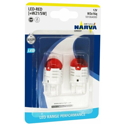 Lampes LED W21/5 Rouge (Blister, 2 pcs)Les sources d'éclairage modernes de la célèbre société Narva de la série Range Performance sont un ensemble de lampes automatiques à LED avec une riche lumière rouge en quantité de 2 unités. Ils conviennent pour remplacer les lampes W21/5W par une douille W3x16q. La tension optimale pour eux est de 12 Volts, ce qui permet l'utilisation de feux d'avertissement dans les véhicules de tourisme. Cette catégorie de sources lumineuses est bimode avec une consommation électrique de 0,8 Watt ou 1,75 Watt. Le kit est installé dans les feux stop et fournit un rayonnement lumineux clairement visible sur la route. Sa consommation d'énergie est réduite par rapport aux lampes standards. Parmi les avantages figurent : la résistance aux vibrations et aux chocs, la simplicité d’installation et les dimensions compactes. La lumière rouge vif, créée à l’aide de LED de dernière génération, confère à la voiture une apparence élégante et garantit une conduite sûre et confortable. Avec de telles lampes, le véhicule sera instantanément visible même dans des conditions de mauvaise visibilité. L'ensemble de lampes est emballé sous blister et présente une fabrication de haute qualité et une longue durée de vie. Son utilisation comme source d'éclairage externe pour un véhicule circulant sur la voie publique n'est pas approuvée par la ECE.