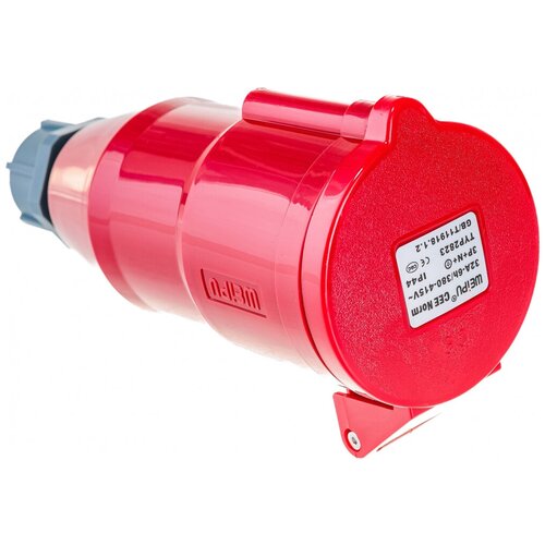 La prise triphasée IEC309 est conçue pour une installation sur un câble électrique. Le boîtier démontable permet une installation pratique du produit sur le câble. Le connecteur est fixé sur le câble à l'aide d'une pince de serrage, ce qui garantit une fixation et une étanchéité fiables du boîtier. La tension maximale autorisée est de 415 V. Le courant de charge maximal est de 32 A. La couleur est rouge.
