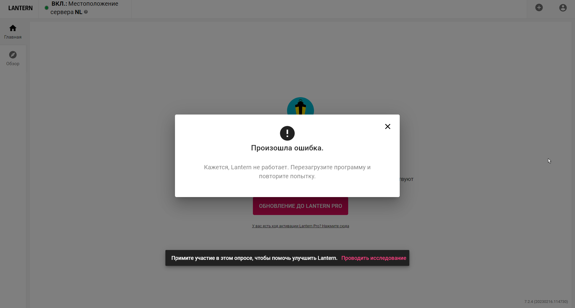 Lantern не работает