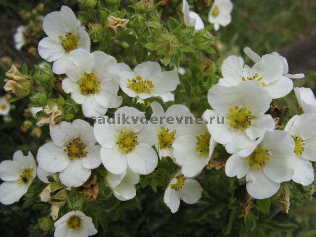 Белоснежные сорта, прежде всего, представлены роскошной лапчаткой «Абботсвуд» . Характерные черты сорта: кустарник довольно компактный; высота - до метра; крона напоминает подушку;