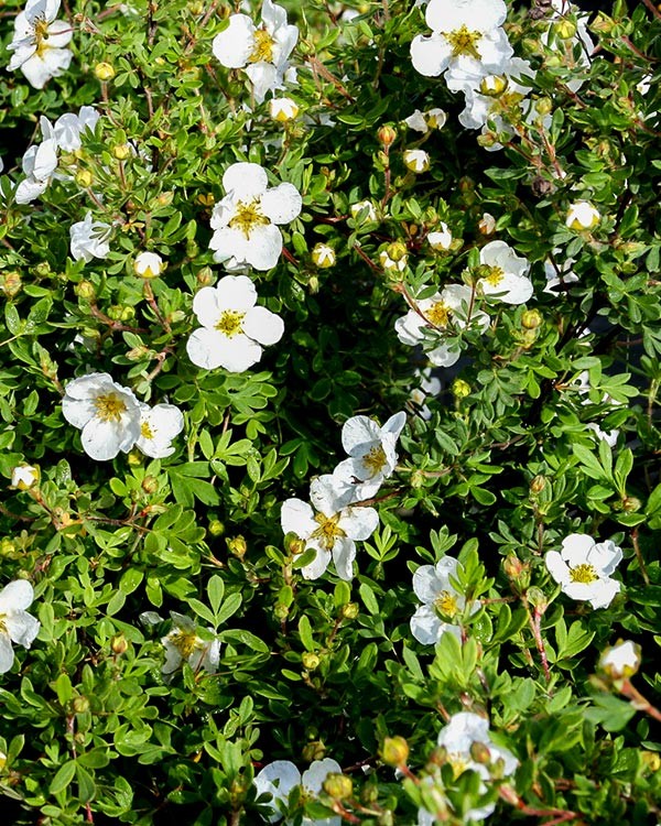 Лапчатка Лапчатка кустарниковая "Абботсвуд" Potentilla fruticosa 'Abbottswood' Кустарник высотой и шириной до 1 м . Годовой прирост составляет 20 см . в высоту и ширину . Крона округлая, плотная . Листья зеленые, опушенные . Цветки белые, многочисленные . Цветение обильное в июне-сентябре .