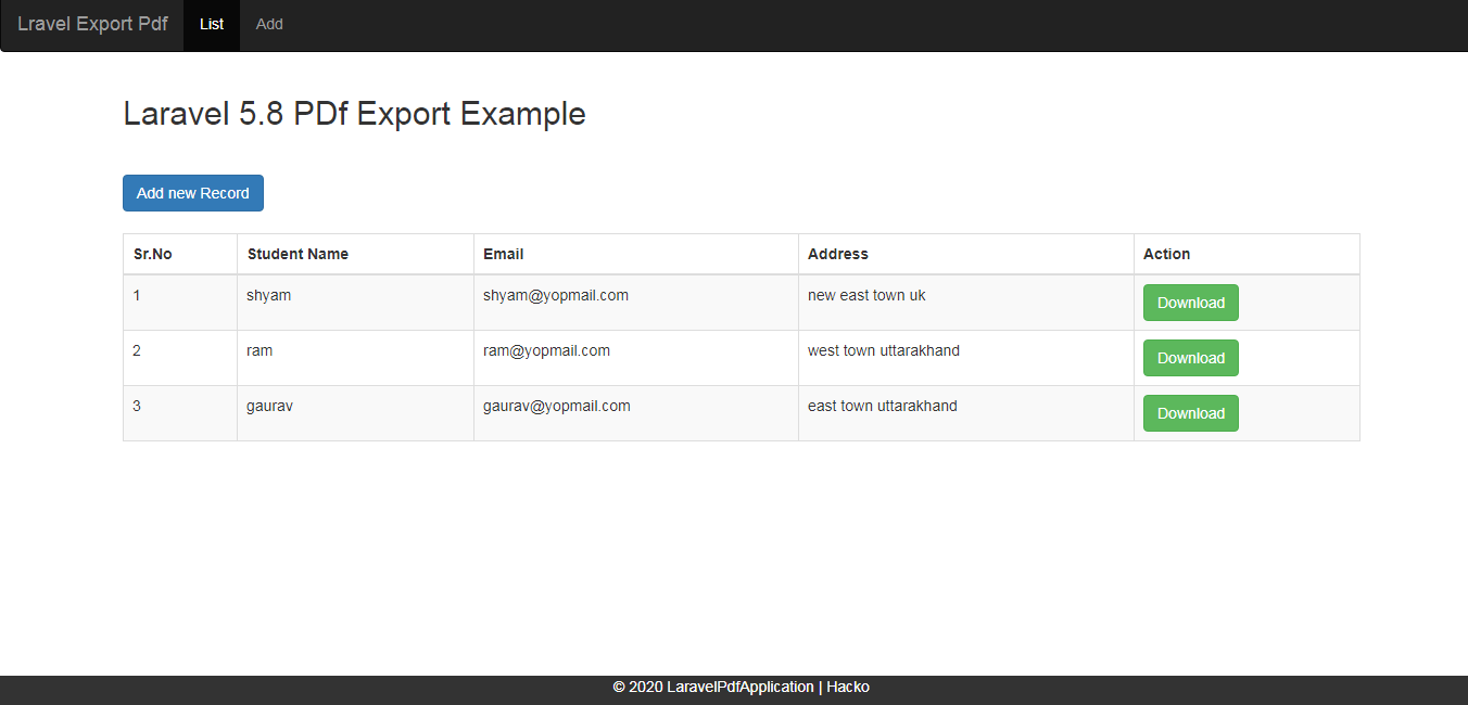 Laravel export
