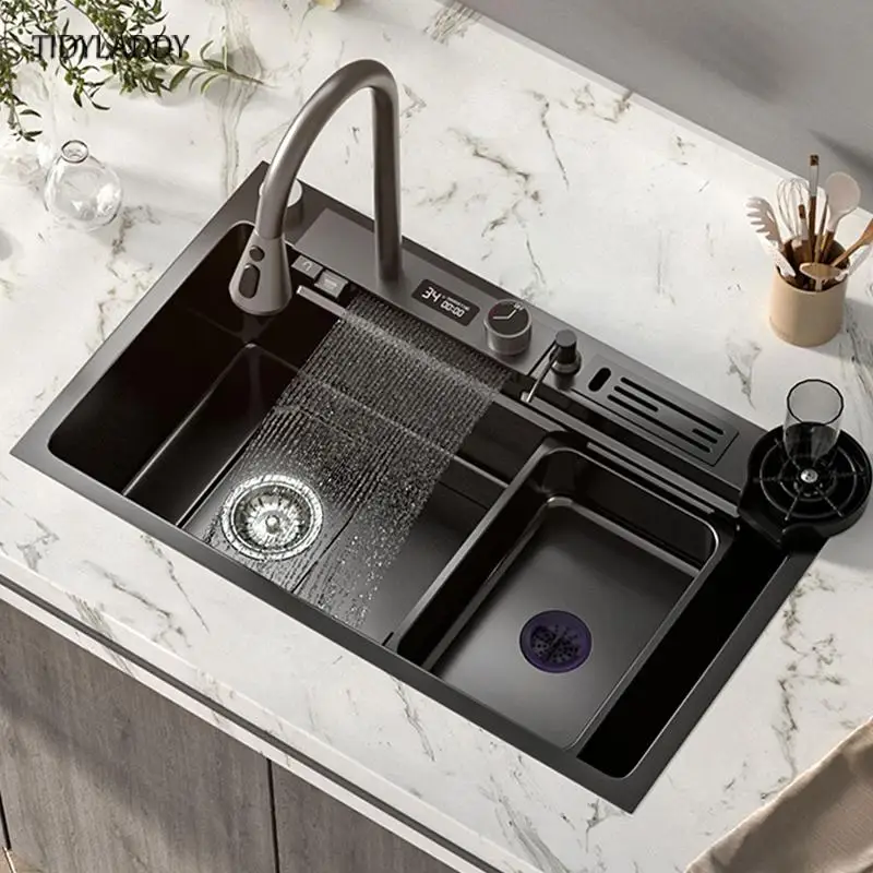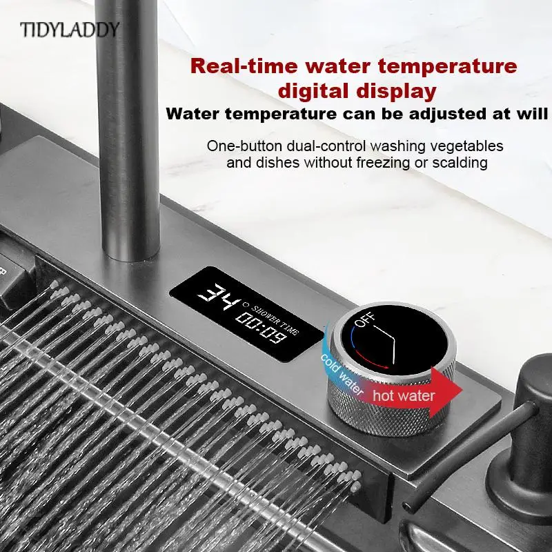hdHpTiskIeHere you can buy Large 304 Stainless Steel Kitchen Waterfall Sink Digital Display Single Sink Dish Basin Sink With Multifunction Touch Waterfall with free delivery to your post office.