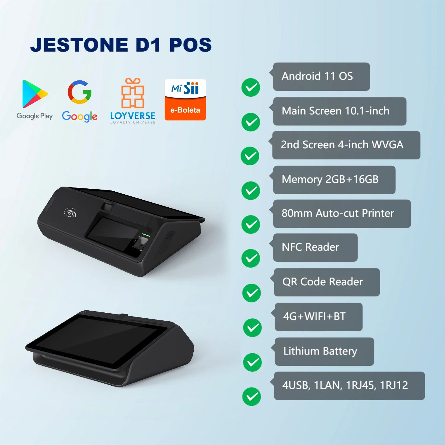 Large Battery Desktop Android 11 POS System D1 with Dual Screens 80mm Auto-cut Printer Cash Register 4G SIM Ordering POS - Купить с бесплатной доставкой