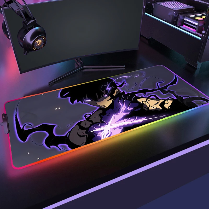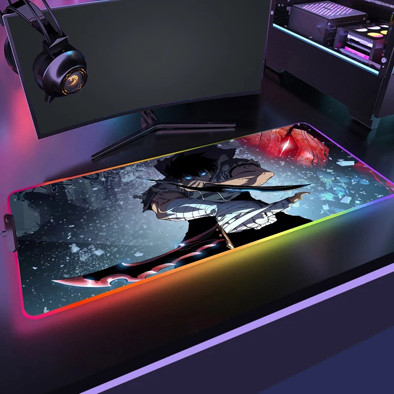 YvZJCOuEJoHere you can buy Large Computer Mousepad Solo Leveling Gaming RGB Non-Slip Mouse Mat With Backlit Manga Anime Gamer LED Mouse Pad Game Carpet XXL with free delivery to your post office.