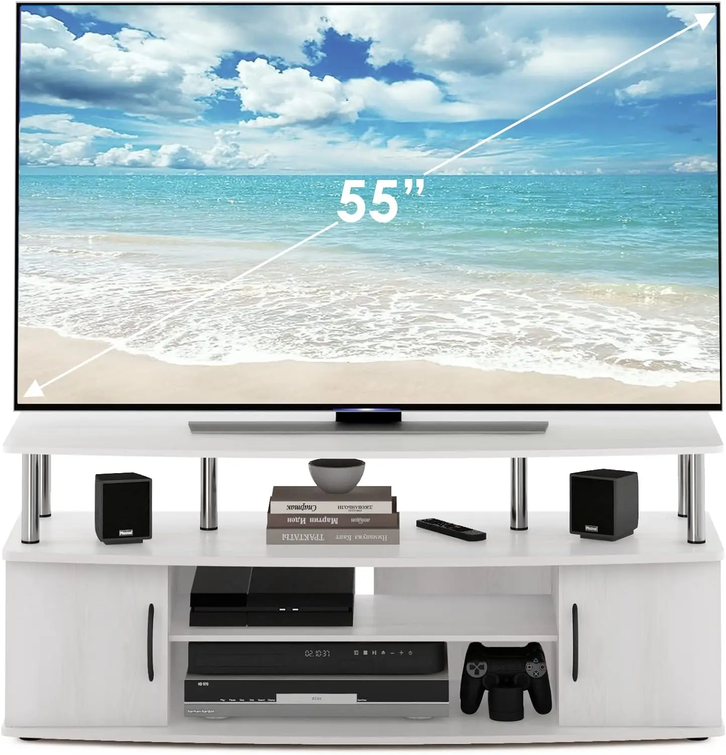 KuYOXxqWCHere you can buy Large Entertainment Stand for TV Up to 55 Inch,Plastic/Stainless Steel Pole,Lightweight, Durable,Water Resistant,Multiple Colors with free delivery to your post office.