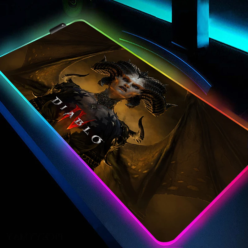 Large Gaming Mousepad Diablo 4 With Backlit RGB Rubber Mouse Mat LED Extend HD Print Mouse Pad Gamer Rubber Computer Table Mat - Купить с бесплатной доставкой