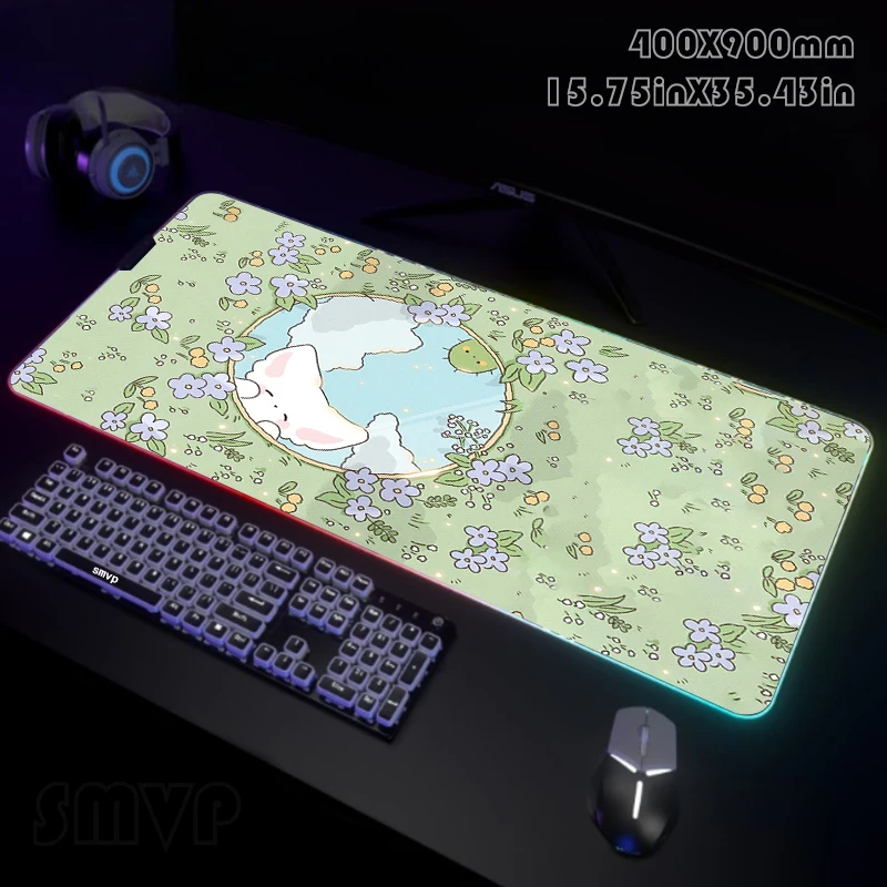 Large LED Desk Mats XXL RGB Computer Mousepad Cute Plant 90x40cm Backlight Keyboard Mat Table Pad Gamer Luminous Mousepads - Купить с бесплатной доставкой