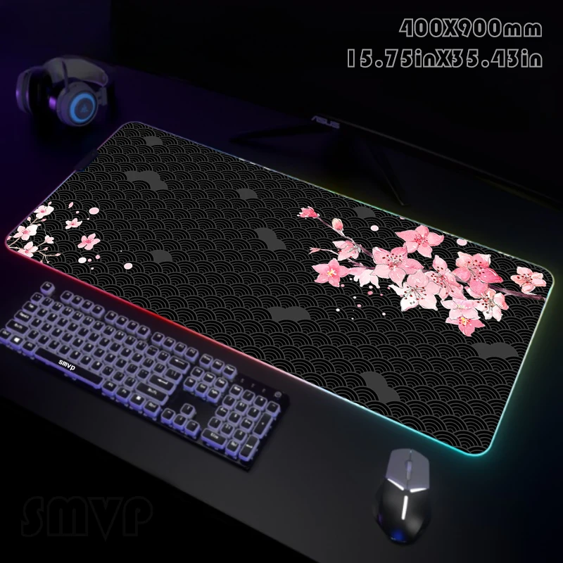 cRkykEhvaHere you can buy Large LED Desk Mats XXL RGB Computer Mousepad Sakura 90x40cm Backlight Keyboard Mat Table Pad Gamer Luminous Mousepads with free delivery to your post office.