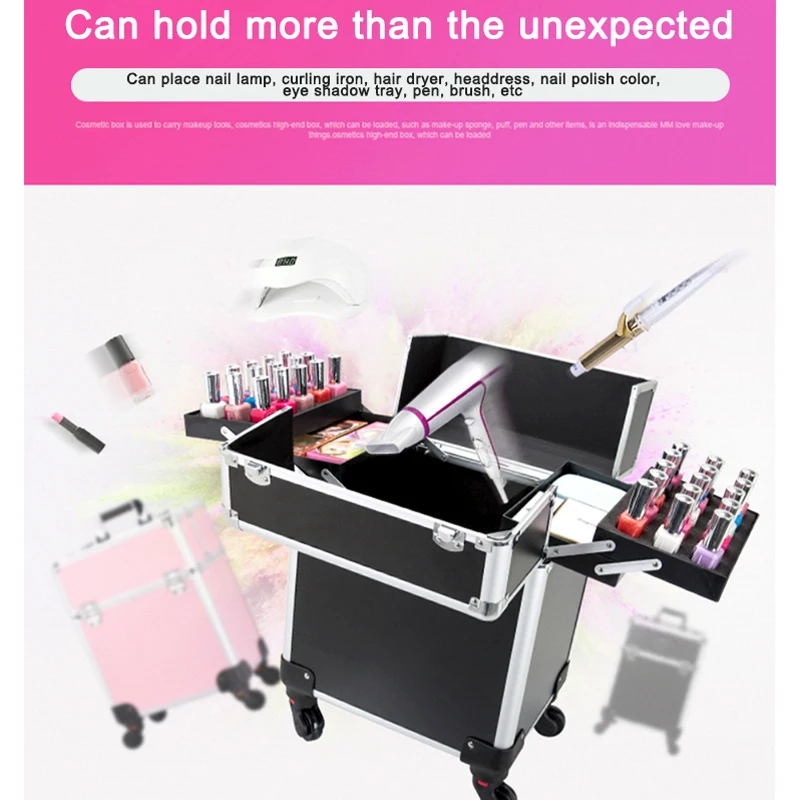 QSQkMKHaoHere you can buy Large Pull Rod Toolbox Portable Multi-Layer Cosmetics Organizer Box With Universal Wheels Apply To Makeup & Hairdressing Storage with free delivery to your post office.