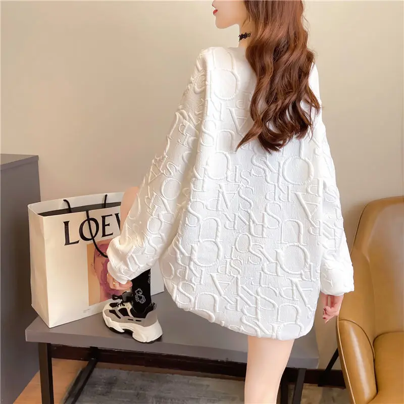 «Large Size Loose Thickening Medium and Long Wei Clothing 2022 Women Autumn Lean Letter Relief Lazy Korean Version Top» по лучшей цене на рынке! Всего за 19$ (1805рублей)