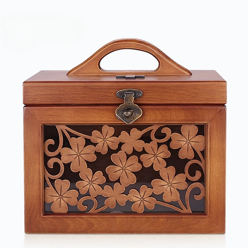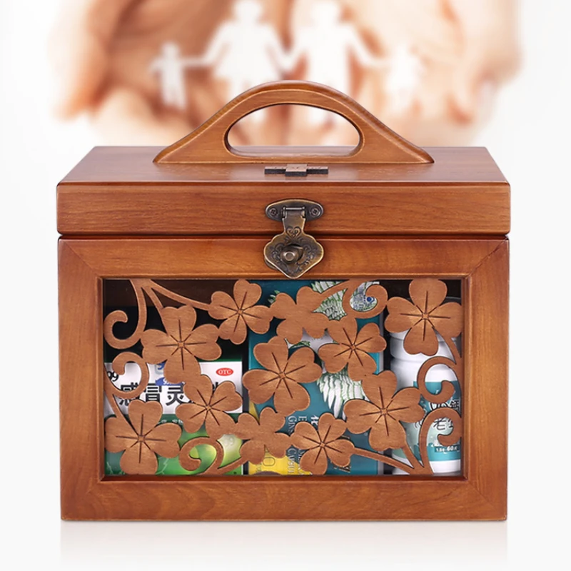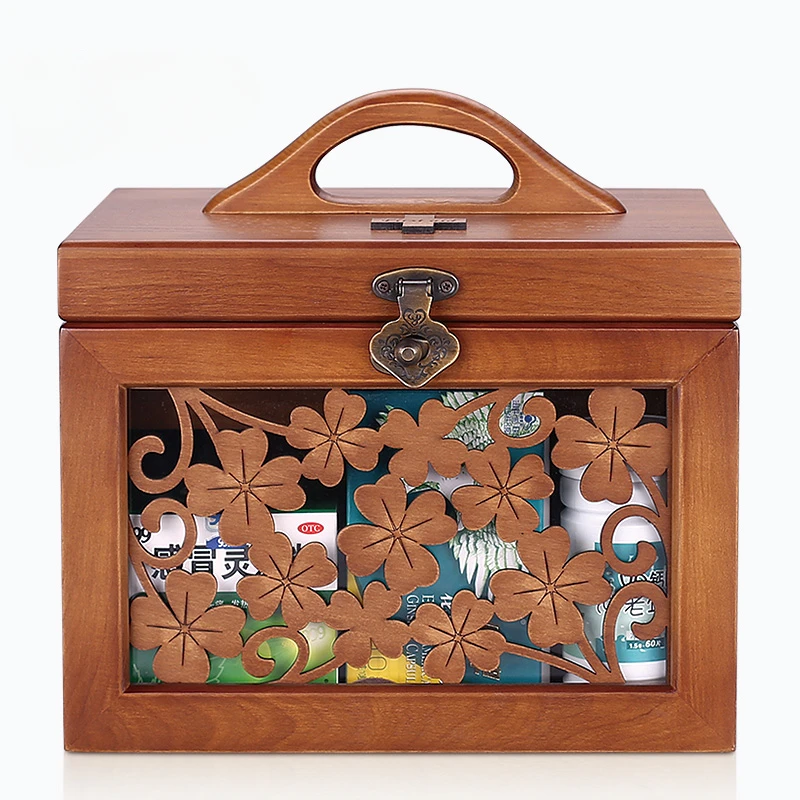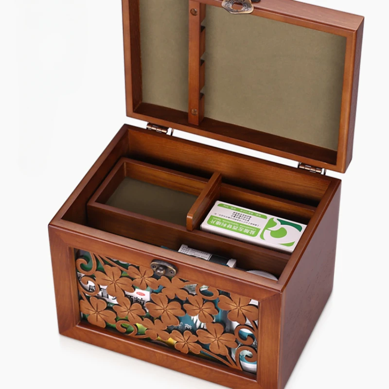 Large Solid Wood First-aid Kit Retro Buckle Storage Boxes Partition Classification Pill Box Hollow Carved Medicine Organizer - Купить с бесплатной доставкой