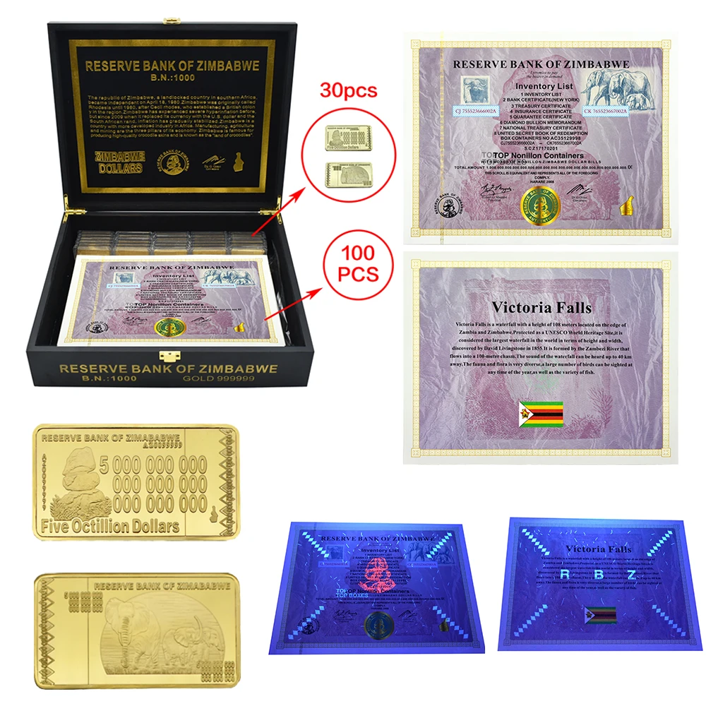 qrsJBBDnHere you can buy Large Zimbabwe Certificate Banknotes Top Nonillon Containers Paper Money With Five Octillion Dollars Gold Bar Fans Collection with free delivery to your post office.