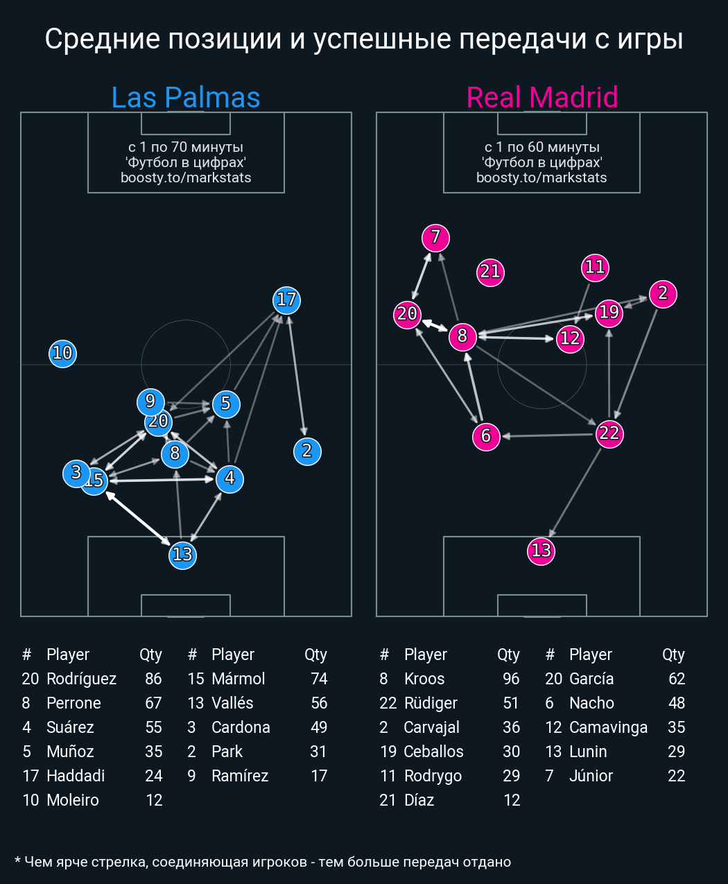 53 успешных передач из 66 попыток (3 под удар, 5 с продвижением, 17 на трети соперника)