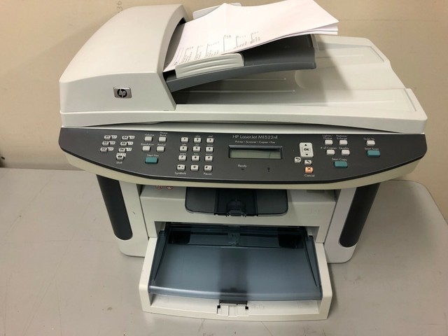 HP M1522nf LaserJet Multifunction Printer Fax Bundle . Need a little elbow room . HPs surprisingly compact all in one LaserJet M1522nf Printer has a flatbed design that can copy and scan a variety of documents; it also sends faxes and its networkable . You will get sharp looking text in speeds as fast as 24 pages per minute .