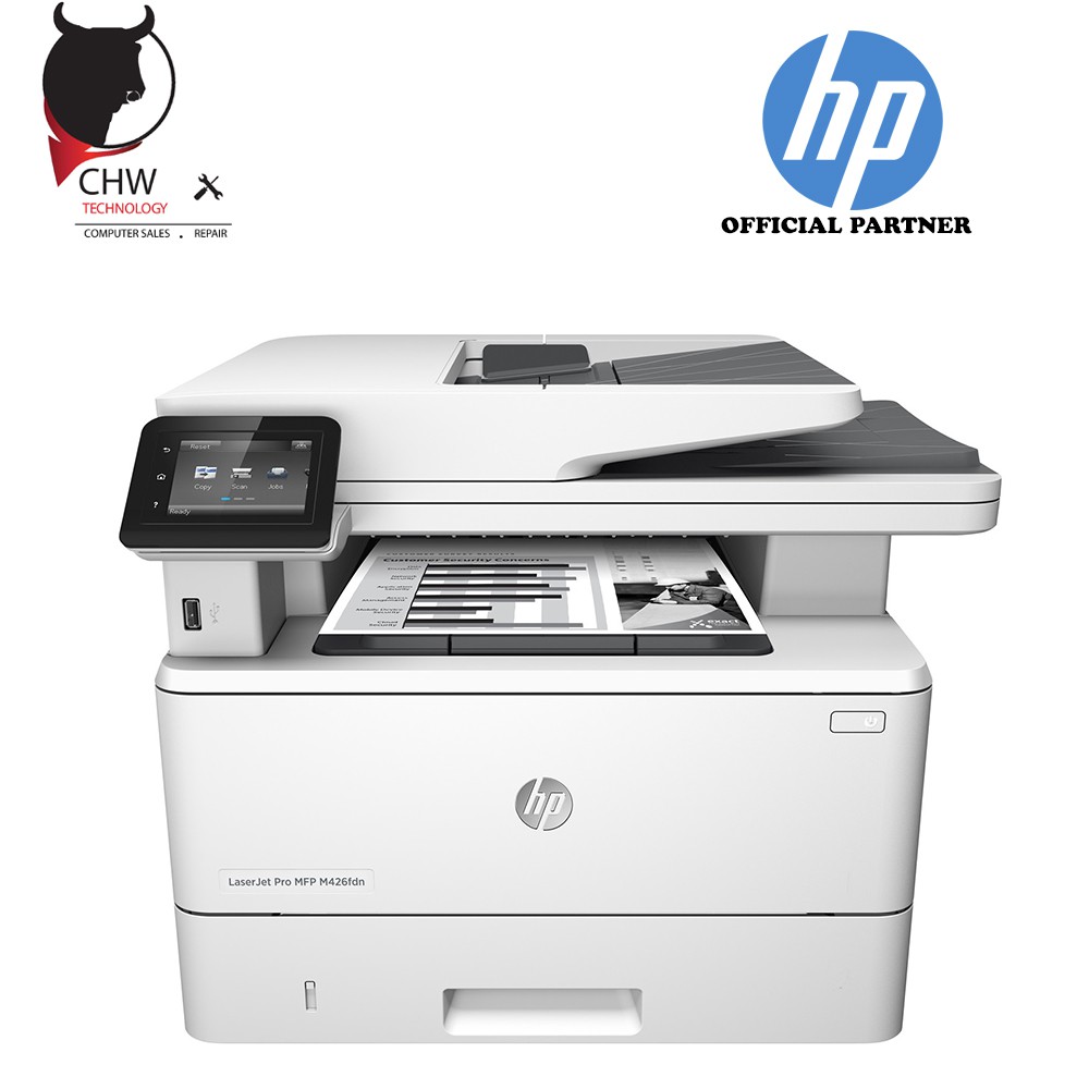 The HP LaserJet Pro MFP M426fdn multifunction printer with built-in Ethernet networking guards against threats with comprehensive security built for how you work . Speed through printing, scanning and fax tasks and keep data protected with the HP LaserJet Pro MFP M426fdn laser printer for your small business .