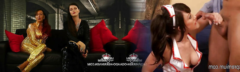 Госпожа в латексе дрочит член раба на PornoKlad .