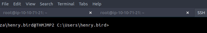 ssh za\\henry.bird@thmjmp2.za.tryhackme.com