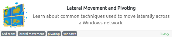В этой комнате мы рассмотрим горизонтальное перемещение (Lateral Movement), группу методов, используемых злоумышленниками для наиболее скрытного перемещения по сети. Мы узнаем о нескольких распространенных методах, используемых в на практике, и о необходимых инструментах .