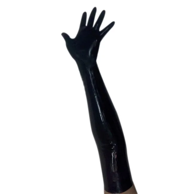 EXLATEX Latex Rubber Black Long Gloves Club Outfits Accessory Plus Size