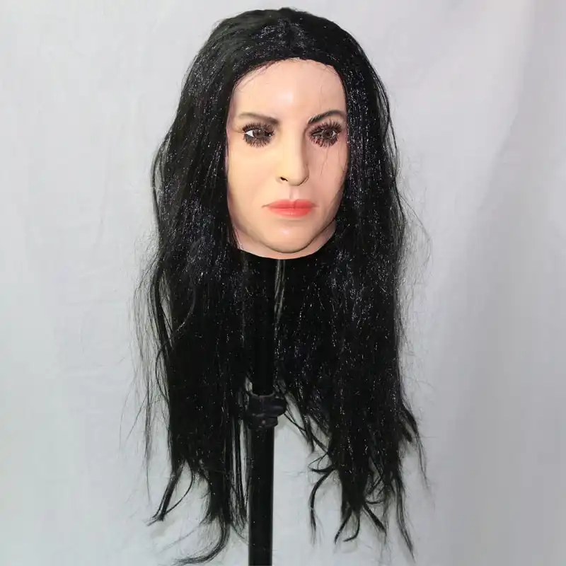 Realistic Sexy Female Mask with Black Long Hair Halloween Party Latex Mask Woman Face Crossdressing Sissy