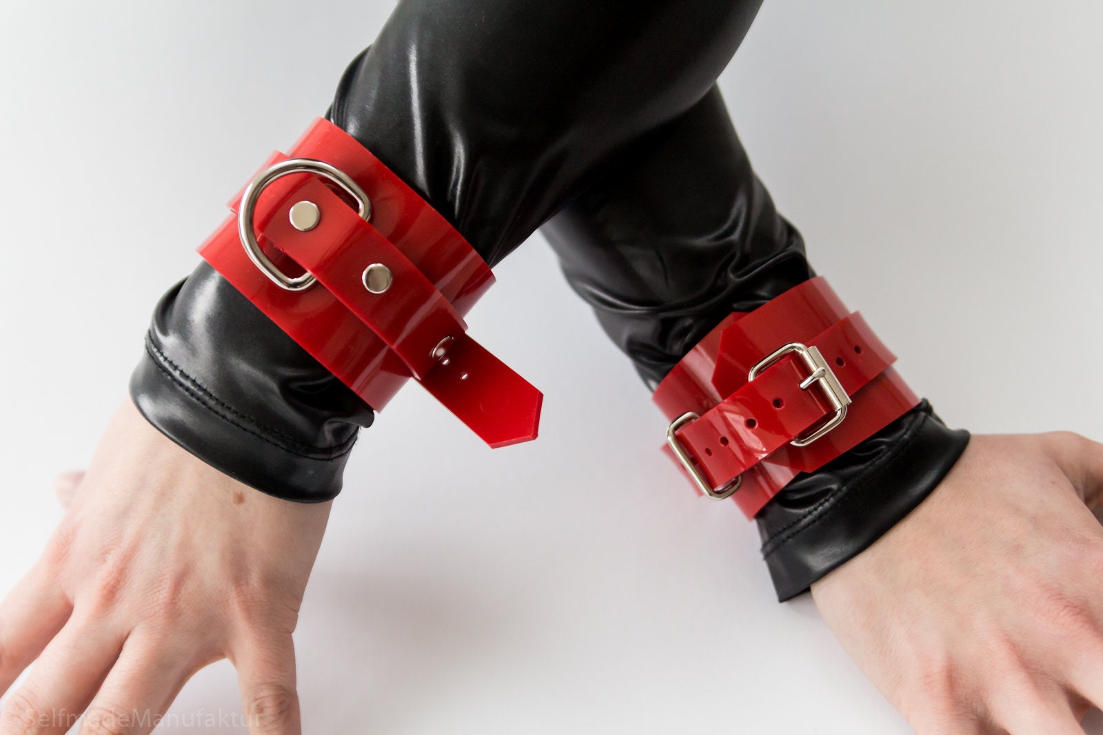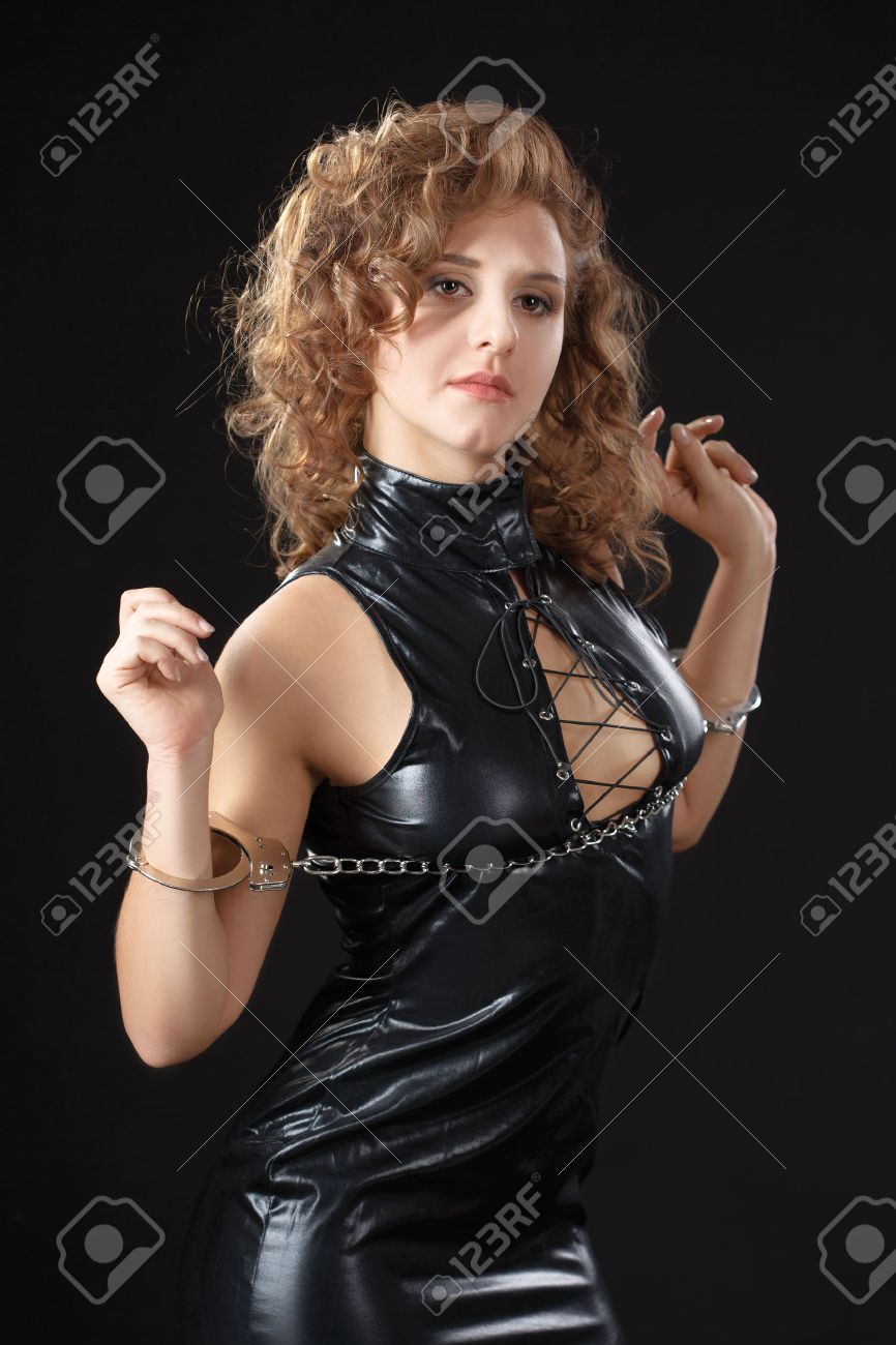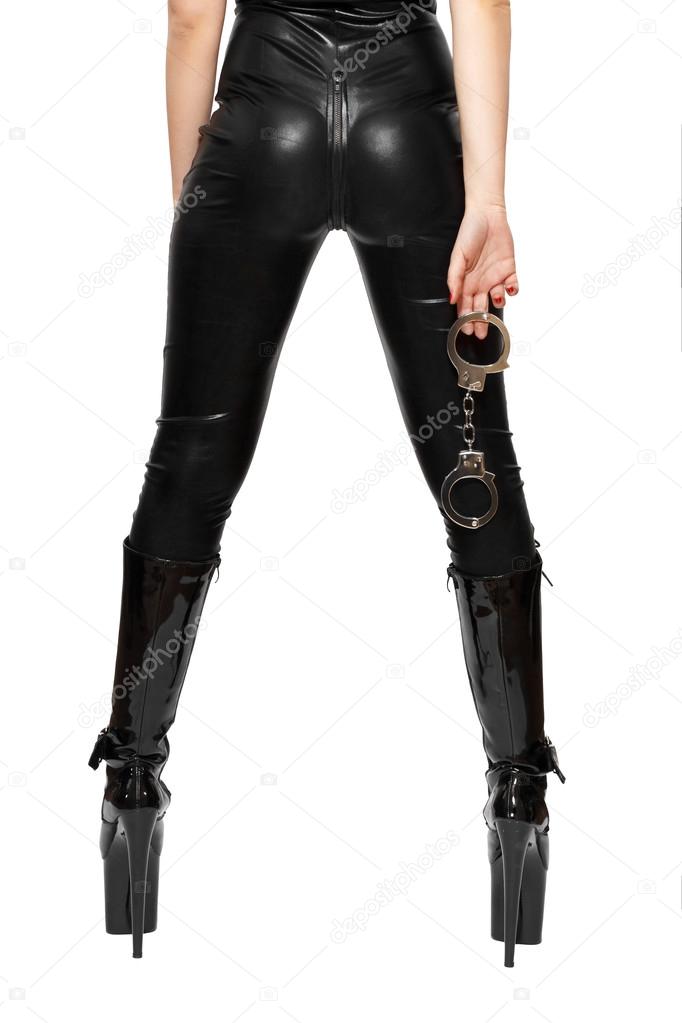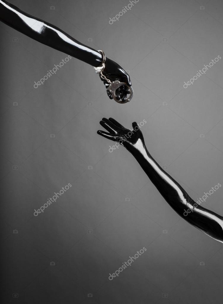 Latex handcuff bondage image