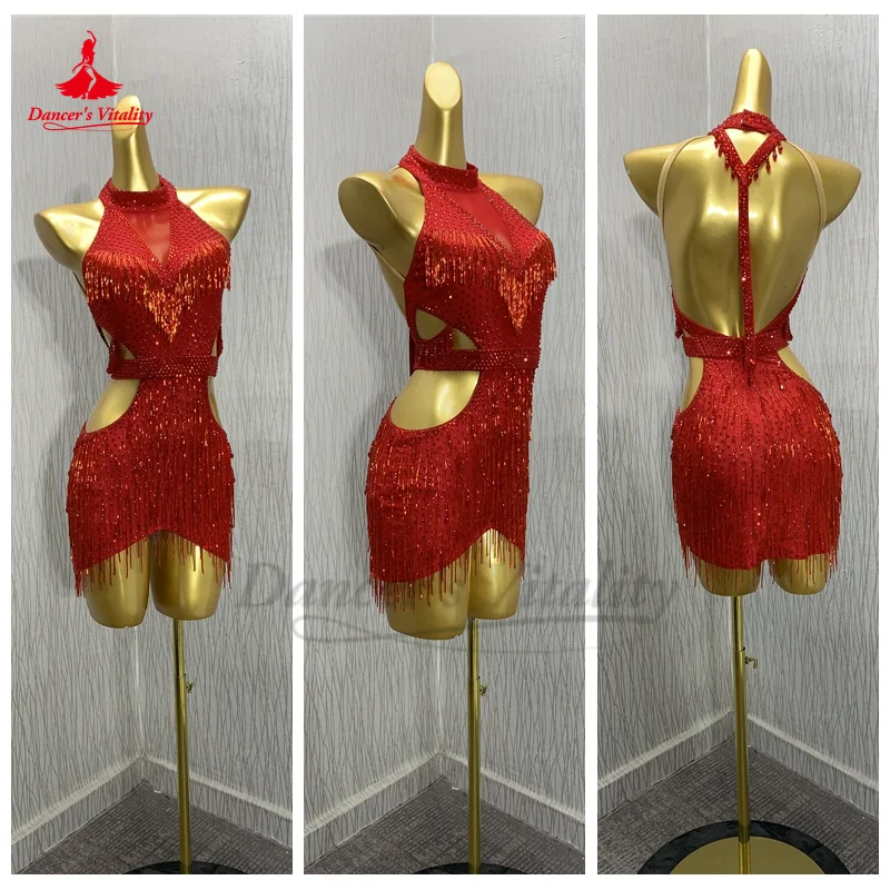 Latin Dance Performance Dress Customsized Adult Children Rumba Cha Cha Tango Competition Practice Dress Bead Tube Tassel Dress - Купить с бесплатной доставкой