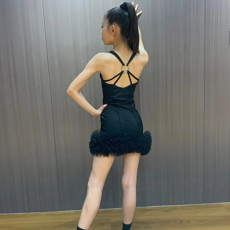 mqGKcIHdHere you can buy Latin Dance Training Clothes For Girls Back Metal Ring Fluffy Dress Children Chacha Rumba Tango Latin Performance Wear DN15858 with free delivery to your post office.