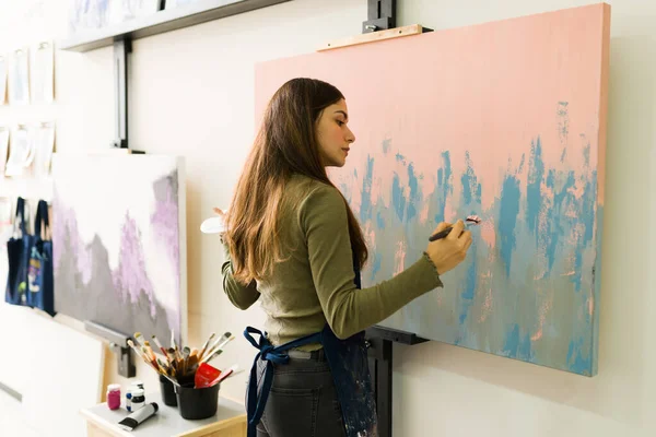 Латинская студентка с кудрявой учебой в классной комнате