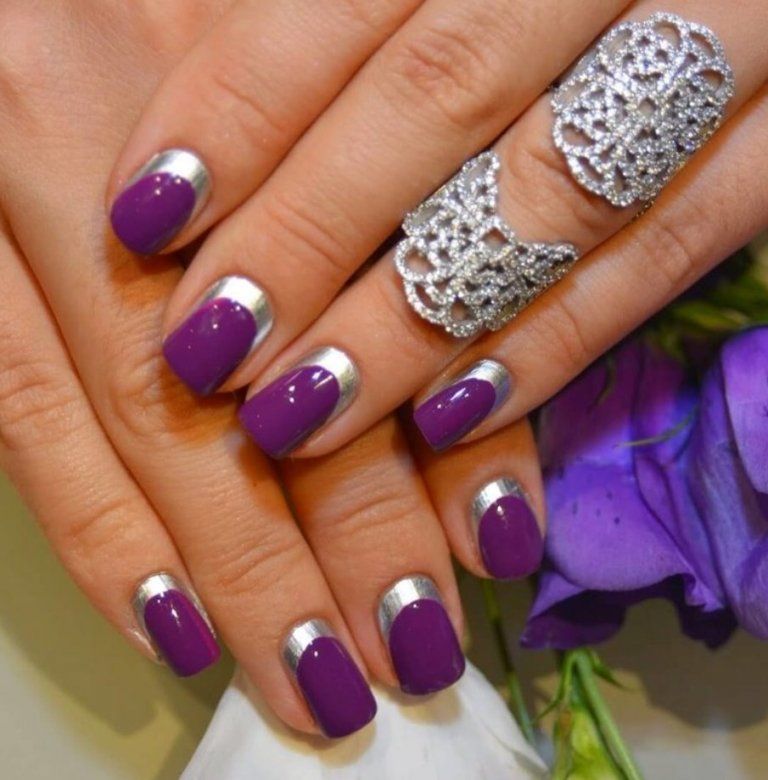 Лавандовый маникюр с блестками 140 фото